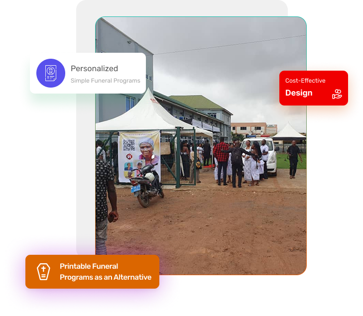 Create personalised but simple funeral programs to save printing costs on funeral brochures. Enhance interactivity by connecting the program to eg the Online Condolence Book and donation link, through QR codes. As an alternative, the funeral section of the Ghana Memorial could also function as a printable Funeral Programme.