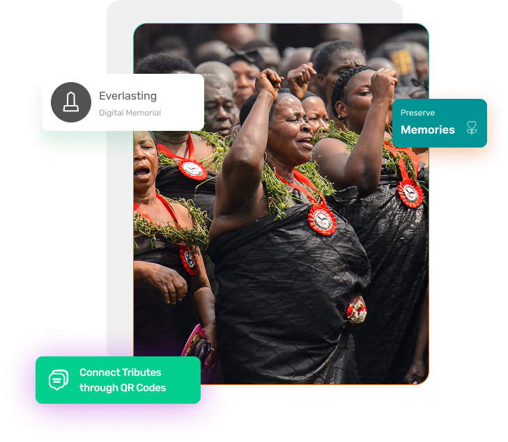 Create an everlasting memorial, a beautiful and complete tribute, also published on GhanaRemembers, the Ghana heritage site aka digital heaven. This extensive digital obituary ensures your loved one’s memory is preserved forever, allowing family and friends to share stories, photos, and memories in one place. The memorial can be linked with a QR code to printed material and the toembstone.