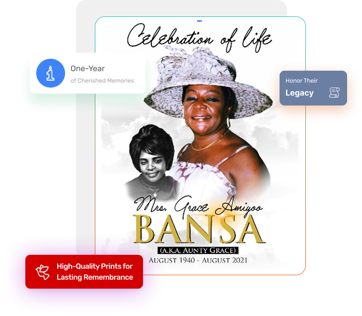 Celebrate the One Year Anniversary by reusing your existing designs and materials. This efficient approach ensures nothing is lost, and you can continue to honor your loved one for many years. Utilize web-to-print options for high-quality prints, making the remembrance process seamless and meaningful.